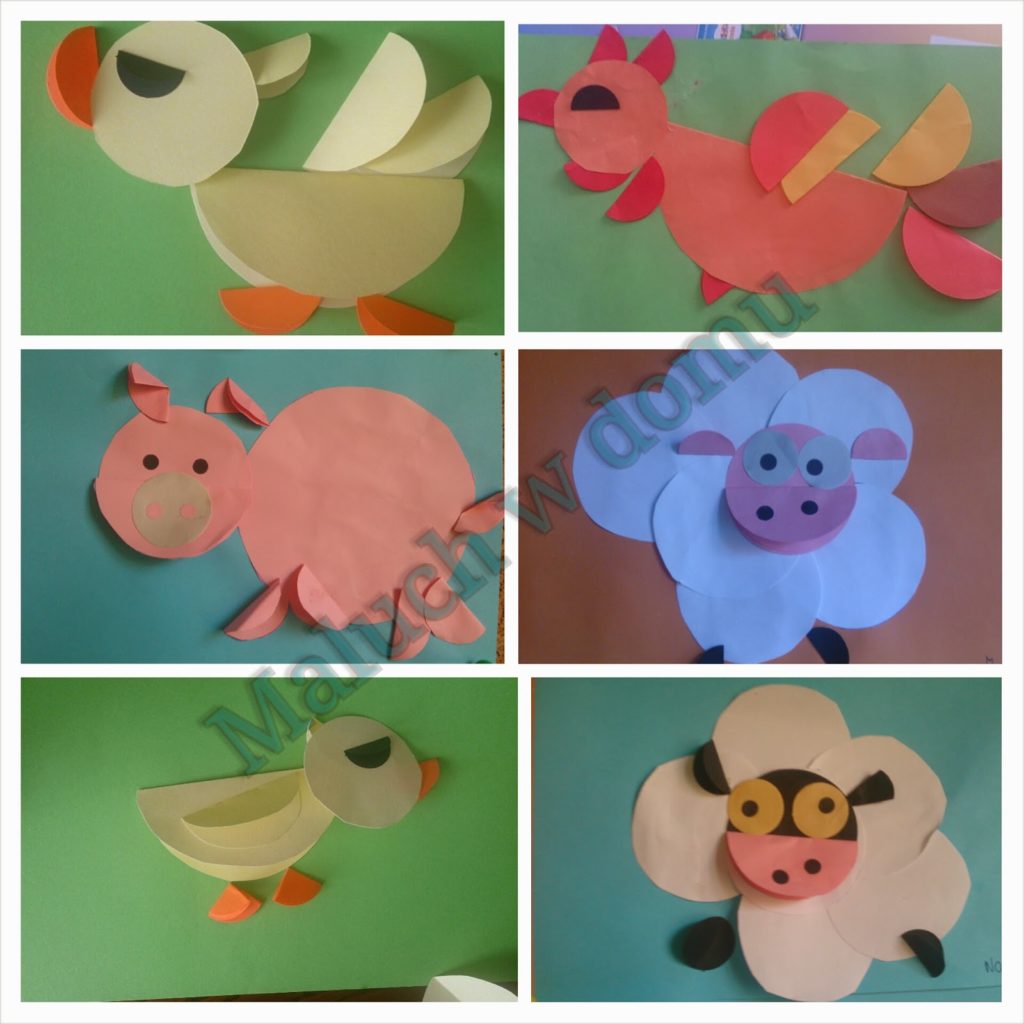 Do wykonania każdego ze zwierząt potrzebne będą nam koła różnej wielkości i kolorów oraz kartka i klej. Za chwilę przedstawię instrukcję krok po kroku w jaki sposób stworzyć koguta, kaczkę, świnkę i owcę.
