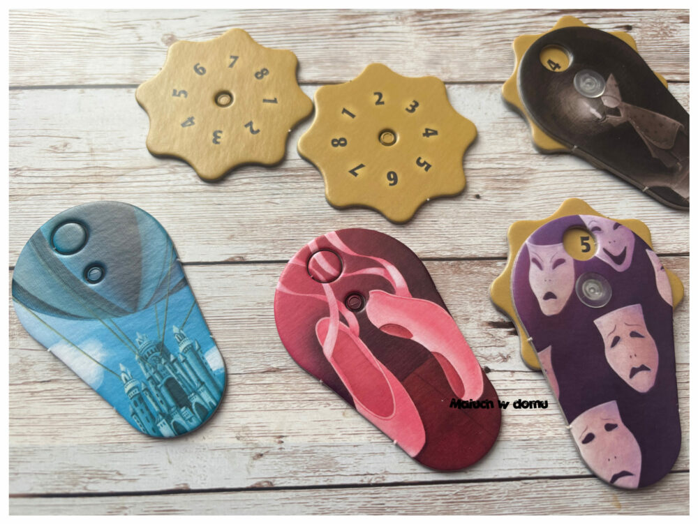- plansza składająca się z: toru punktacji, 8 miejsc na karty i zasad punktowania.