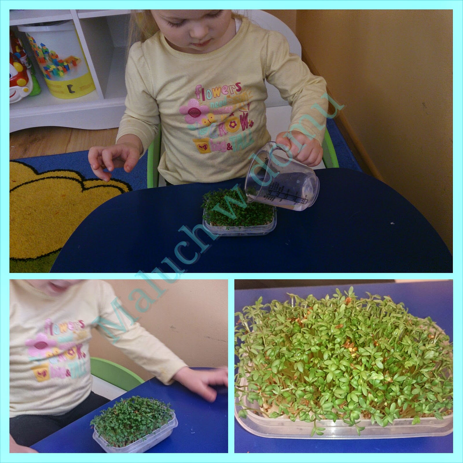 Rzeżucha ma się dobrze. Gdy wchodzi się do pokoju Hanuli czuć wręcz jej zapach, co stanowi dodatkowe wrażenia zmysłowe. Nie ma to jak doświadczenia polisensoryczne (wykorzystujemy wzrok, dotyk, węch i smak 🙂