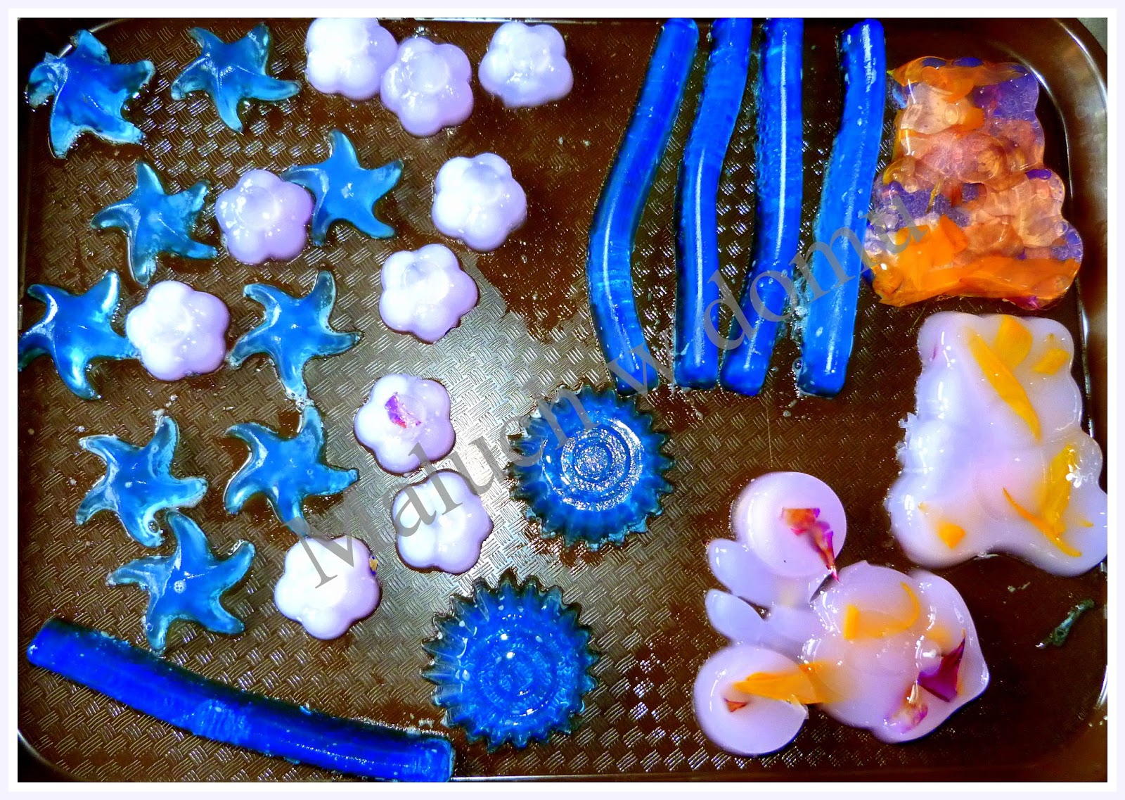 Prawda, że mydełka wyszły cudnie? To naprawdę rewelacyjny pomysł na upominek – jedyny w swoim rodzaju i niepowtarzalny. Jeśli dodamy mniej żelatyny mamy idealną bazę do świeczek żelowych!