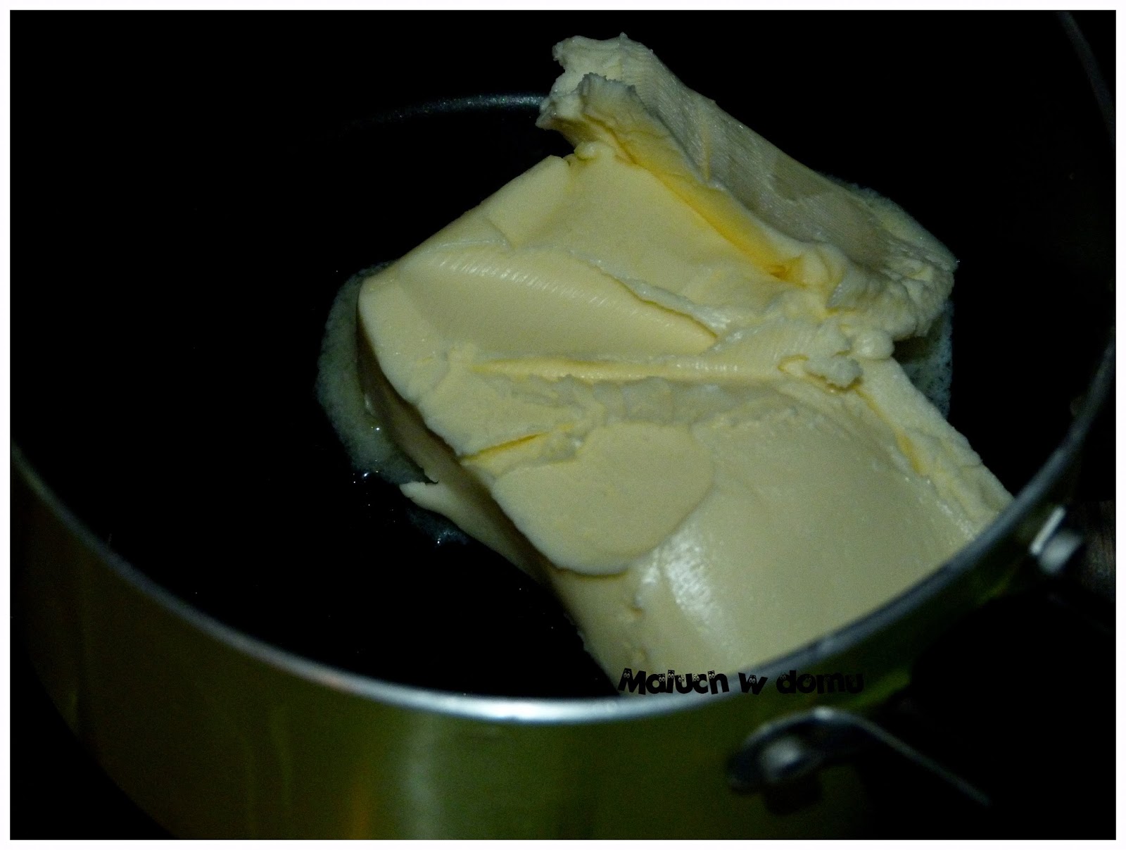 Dodajemy po kolei składniki: mąkę, cukier, cukier wanilinowy, jajka, mleko, proszek do pieczenia i masło.Całość mieszamy dokładnie mikserem.