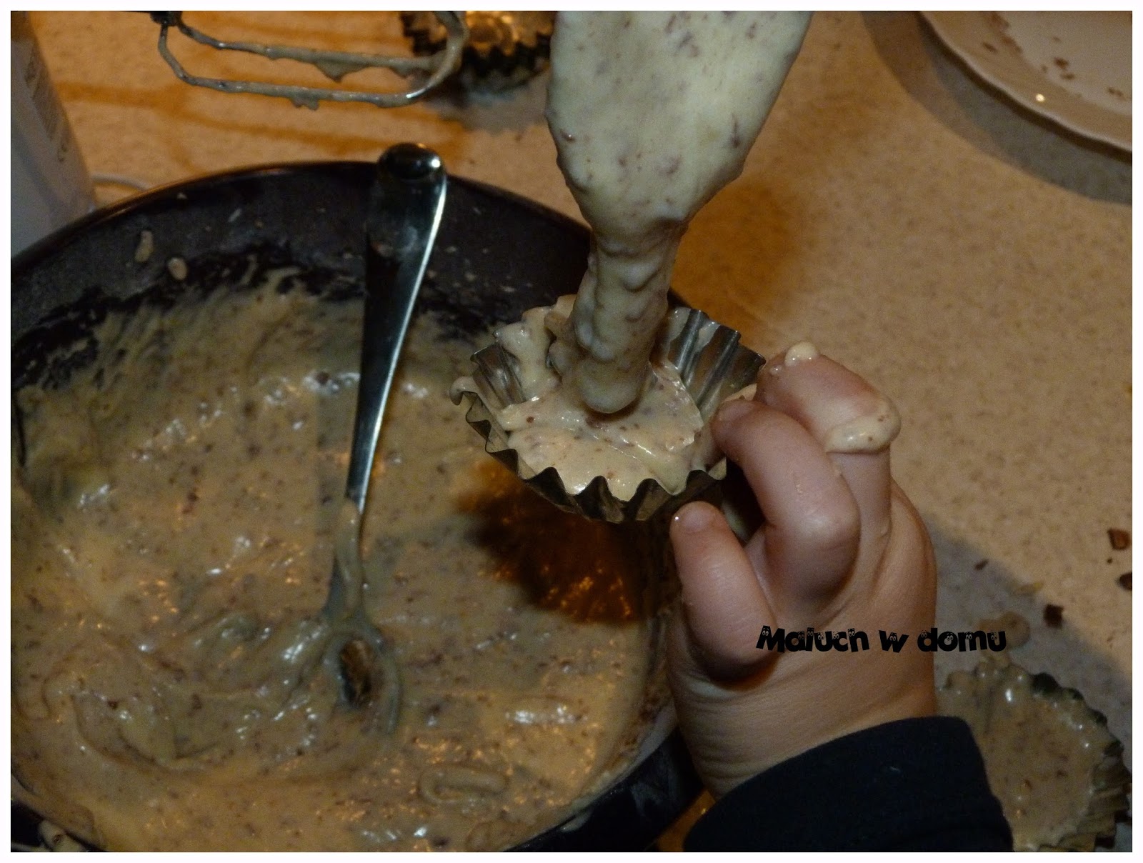 To, że Hania towarzyszy mi w ekscesach kuchennych wie każdy kto tu zagląda. Czy się przejmuję, że jest przy tym 10x więcej bałaganu? Nie! Bałagan się posprząta. A ona ma frajdę i niesamowitą satysfakcję, a przy tym się uczy: odmierza (poznaje różne jednostki pomiarowe), dodaje, łączy, poznaje zasady bezpieczeństwa podczas pracy :), przestrzega higieny, rozróżnia składniki (np. cukier: zwykły, puder i wanilinowy – rozpozna każdy z nich, rozróżni mąkę pszenną od ziemniaczanej etc. – dobrze to wróży jej przyszłemu mężowi :). Same plusy! Tym razem na szybko rzuciłyśmy się na łatwe muffinki 🙂