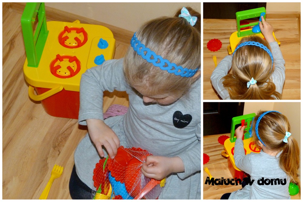 W domu mamy większą kuchenkę ale Córcia napewno cieszyłaby się z kolejnej ;-). Tylko my zapewne właśnie tą zabrałybyśmy do piaskownicy bo tam ciągle się gotuje coś 😉 a po skończonej zabawie siup do wiaderka wszystko zamiast porozwalane dookoła.