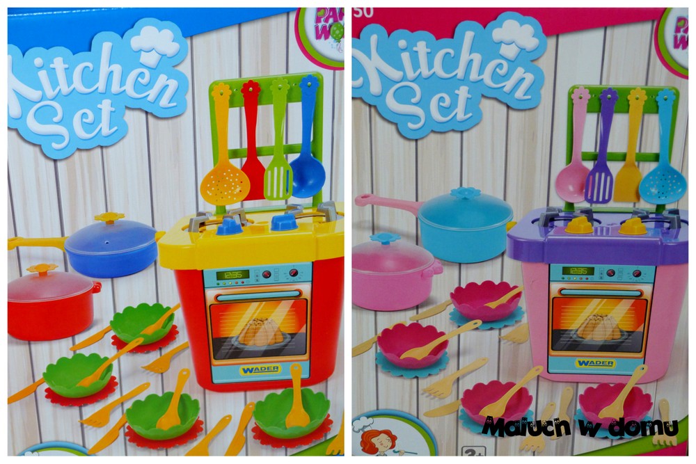 Kuchnia jest mała – mi to absolutnie nie przeszkadza. Elementy na pewno się nie pogubią, bo wszystko można trzymać w jednym miejscu. Plus za wielofunkcyjność. Jakość wykonania: osobiście rzadko dostrzegam jakieś negatywy, bo Wader ma zabawki naprawdę solidne i dopracowane. Wszystko jest bardzo realistyczne, nawet mamy dziurki w pokrywkach do odprowadzania pary :). Jedyne do czego w tym przypadku mogę się przyczepić, to to, że uchwyt od pokrywki słabo się trzyma, gdy „wciśniemy” ją na garnek, przy zdejmowaniu niekiedy „kwiatek” zostaje w ręce, a pokrywka nadal na garnku. Ale to szczegół. Dla mnie ważne jest, że dzieciaki są zachwycone, bawią się wspólnie i wymyślają coraz to nowsze potrawy. Uczą się współpracy i dzielenia – bo kto powiedział, że chłopcy nie mogą się też bawić tego typu zabawkami?