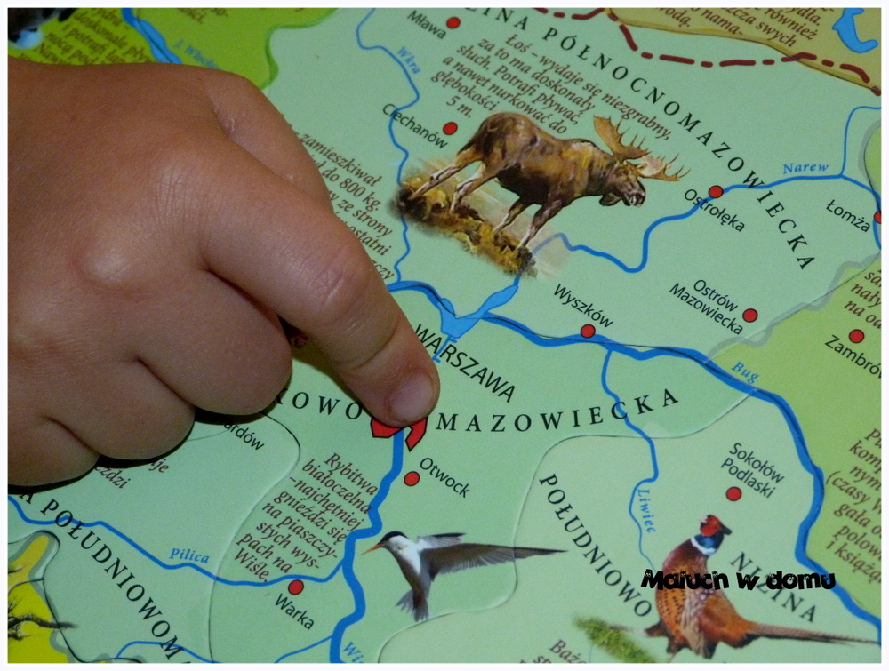Później przyjrzałyśmy się kilku różnym mapom Polski, w tym jedną Hania układała od podstaw – chociaż zadanie do łatwych naprawdę nie należało.