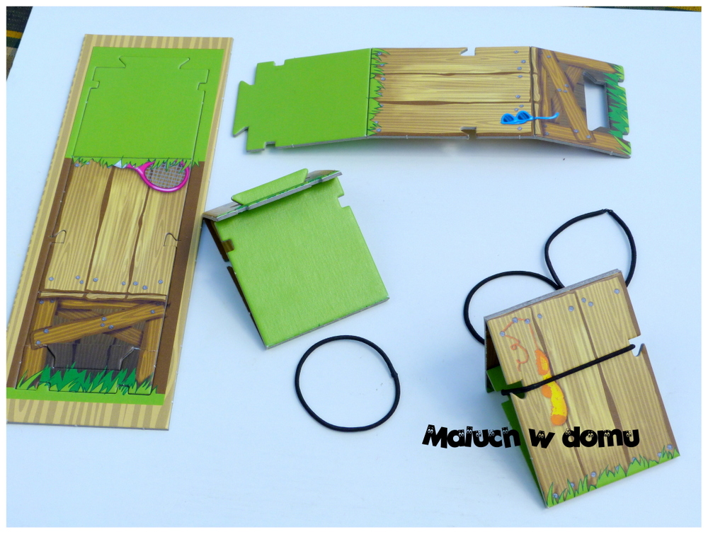 Jest też mała wada. Wszystkie elementy są z grubej tektury – to dobrze, aczkolwiek katapultom to nie służy. Przy wystrzale, dziecko mimowolnie wywiera mały nacisk na wyrzutnię. Jej konstrukcja jest taka, że istnieje ryzyko zagięcia (co widać na zdjęciu poniżej).