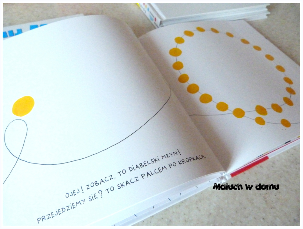 Kiedy pierwszy raz wzięłam je do ręki stwierdziłam, że to nic specjalnego, ot, kilkanaście kartek ze znikomą ilością tekstu i jakimiś kropkami tudzież plamami. Z punktu widzenia dorosłego mogłaby być to książka, którą rzucimy w kąt. Jednak po pierwszej lekturze już wiedziałam, że to tylko wrażenie, bo wśród dzieci robią one furorę, wywołując śmiechy i okrzyki. Miałam okazje „testować” je na swoich pociechach jak również w dwóch przedszkolach i za każdym razem spotkały się z takimi samymi reakcjami.