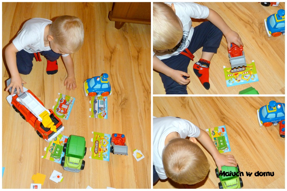 Na początek powiem, że byłam zaskoczona, że Auta znajdują się w serii „Już gram”. Dla mnie na pierwszy rzut oka to puzzle – „dopasowywanka”, aczkolwiek po zapoznaniu się z wnętrzem, nie zaprzeczam, że można je wykorzystać do gry.