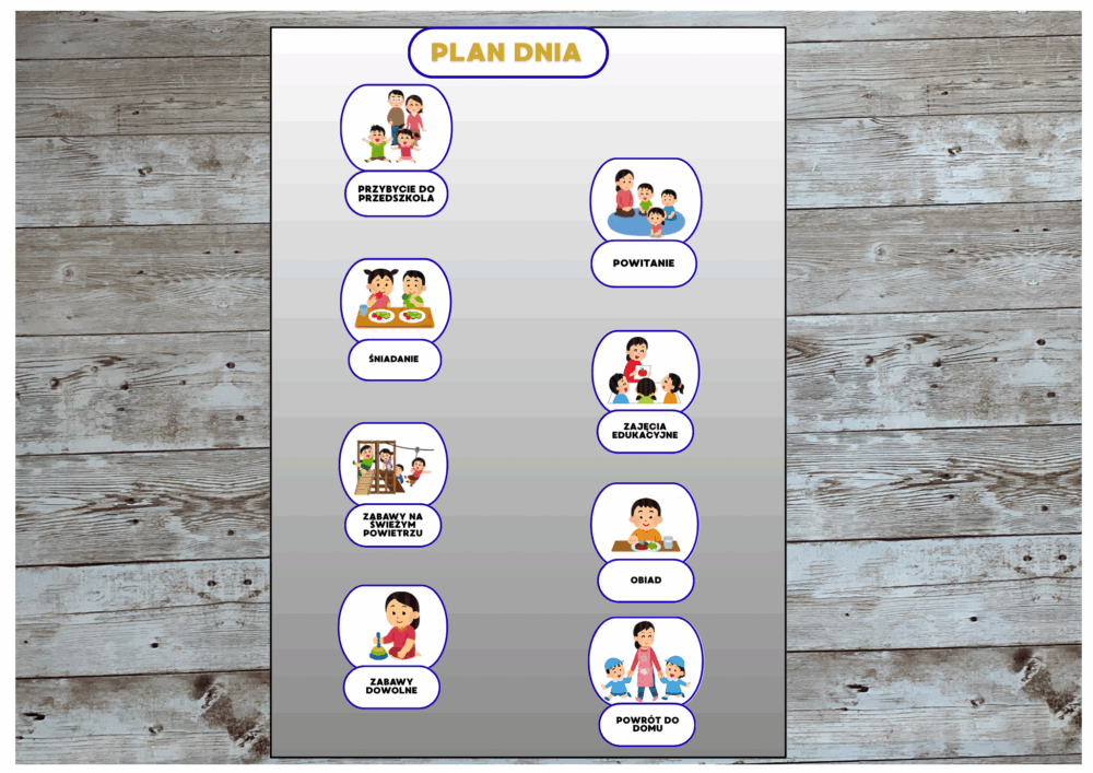 Dzieci czują się bezpieczniej, gdy wiedzą, co je czeka. Stały rytm dnia buduje poczucie przewidywalności i porządku, co jest niezwykle ważne w wieku przedszkolnym. Materiały wizualne ułatwiają zrozumienie i przyswajanie nowych informacji – to szczególnie istotne dla dzieci, które dopiero uczą się mówić lub mają trudności z komunikacją.